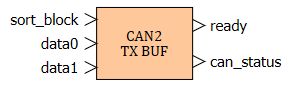 Блок передачи данных CAN из выбранного в свойствах блока буфера. Данные передаются либо в прерывании по приему (TX_EN = Нет), либо по программному счетчику количества циклов основного алгоритма (CNT >=1, TX_EN = Да).