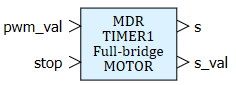 На выход блока s_val выдается значения скважности, приведенные к виду действительного числа в диапазоне 0..1. Выход служит для моделирования работы привода.