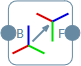 Блок позволяет сформировать жесткую связь между двумя системами координат. Блок применяется для формирования точек подключения кинематических пар и элементов нагружения к звеньям механизма. Преобразование координат представляется как преобразование из базовой (Base) системы координат, подключенной к порту "B", в зависимую (Following) систему координат, подключенную к порту "F".