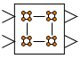 Блок формирует композитную антенную решетку. В узлах несущей антенной решетки располагаются одинаковые подрешетки. Рассчитанные параметры антенной решетки передаются на выходной порт "ant out". Блок рассчитывает диаграмму направленности композитной решетки по формуле: