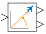 Блок вычисляет азимут и наклонную дальность до цели по известным координатам цели в декартовой системе координат. Азимутальный угол отсчитывается от оси Х против часовой стрелки.
