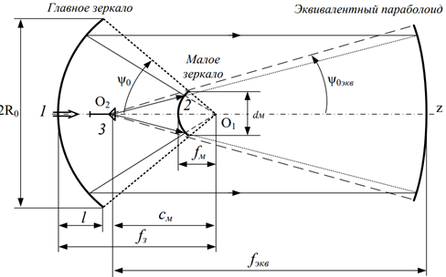 Рис. 1. Двухзеркальная антенна Кассегрена
