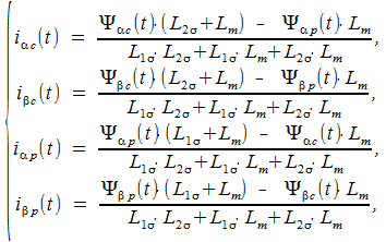 Ψαc(t), Ψβc(t), Ψαp(t), Ψβp(t) – потокосцепления статора и ротора по осям α и β соответственно.