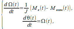 где J – момент инерции, приведенный к валу двигателя, θ(t) – угол поворота вала двигателя, Mв(t) – электромагнитный момент, Mвозм(t) – возмущающий момент.