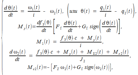 q1(t), q2(t) – углы поворота входного и выходного валов, рад;