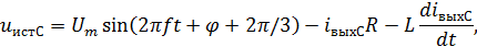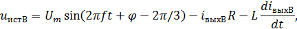 где Um– значение напряжения, задаваемое в свойствах, В; f– значение частоты, задаваемое в свойствах, Гц; φ– значение фазы, задаваемое в свойствах, гр.; t – текущее время расчета; iвых – ток, определяемый при расчете в соответствующей фазе, А; R – значение активного сопротивления, задаваемое в свойствах, Ом; L– значение индуктивности, задаваемое в свойствах, Гн.