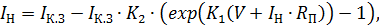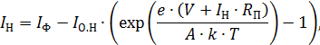 где: параметр A учитывает разницу, полученную при сравнении теоретической и экспериментальной кривых вольт-амперной характеристики; RП – последовательное сопротивление солнечного элемента; IН – нагрузки или выходной ток солнечного элемента; IФ – фототок, протекающий через переход; IО.Н – обратный ток насыщения.