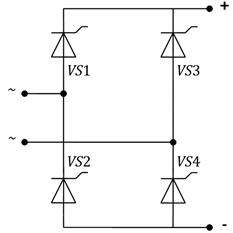 однофазного мостового тиристорного выпрямителя, приведена на рисунке 1. Схема базируется на