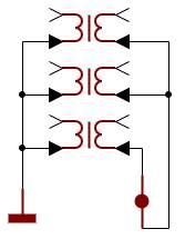 Блок реализует модель трехфазного двухобмоточного трансформатора. Предназначен для использования в цепях c элементами библиотеки ЭЦ - Динамика (ЭЦД). Модель 3-фазного 2-обмоточного трансформатора состоит из трех однофазных трансформаторов (подробнее см. блок "ac - Трансформатор 1-фазный 2-обмоточный"). Объединяя соответствующие выводы блока, можно реализовать различные группы соединения обмоток. Для примера, на рисунке 1 показан трансформатор с группой соединения обмоток звезда с нулем (заземлена) – звезда – ноль (Y0/Y-0).