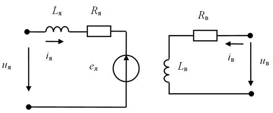 Рис. 1. Схема замещения двигателя постоянного тока: uя, uв - напряжение на якорной обмотке