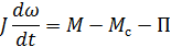 вала двигателя; M - электромагнитный момент двигателя; Mс- момент сопротивления