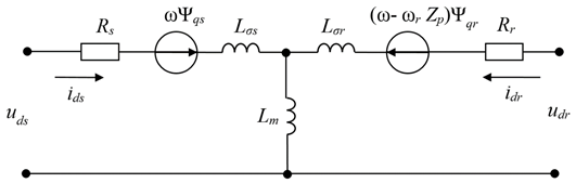 Uds, ids, Ψds – проекции напряжения, тока и потокосцепления статора на ось d;