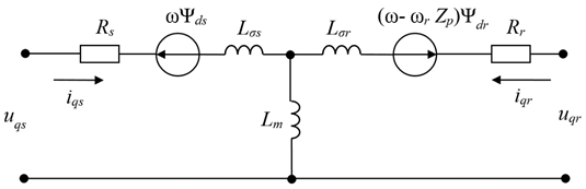 Uqs, iqs, Ψqs – проекции напряжения, тока и потокосцепления статора на ось q;