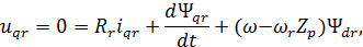 Uqr, iqr, Ψqr – проекции напряжения, тока и потокосцепления ротора на ось q;