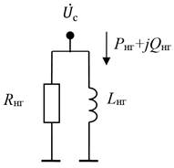 Рис. 1. Схема замещения статической нагрузки типа 1Активное сопротивление нагрузки и индуктивность определяется по задаваемым активной и
