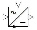 Блок реализует модель выпрямителя. Предназначен для использования в однолинейных