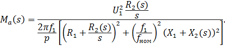 параметров ротора, а значит и моментной характеристики, от скольжения задана следующим