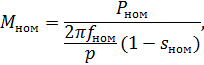 Электромагнитный момент асинхронного двигателя в именованных единицах (Дж) определяется с