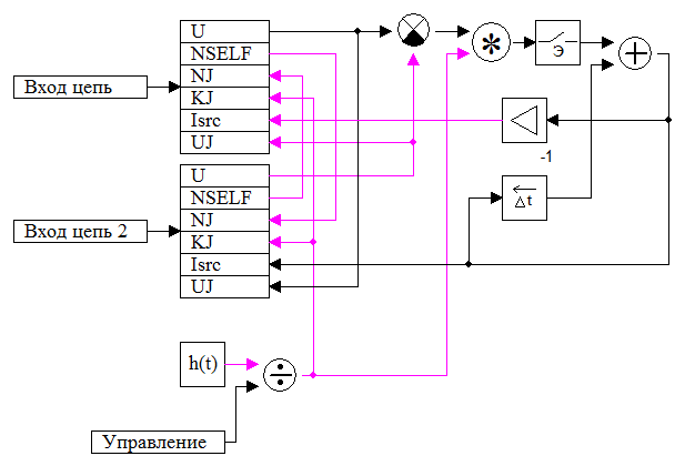 На рисунке (Рис. 1) изображена графически представленная в SimInTech схема аппроксимации индуктивности переменной.