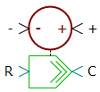 Блок имеет два механических порта (C и R) вращательного движения и два электрических порта (+ и -).
