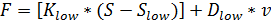 - Dlow - коэффициент демпфирования нижнего упора, Н/(м/с).