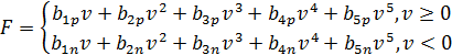 где: b1p, b2p, b3p, b4p, b5p - коэффициенты полинома для v(t) ≥ 0; b1n, b2n, b3n, b4n, b5n - коэффициенты полинома для v(t) < 0.