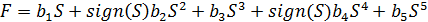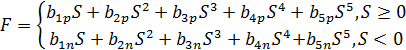 где: b1p, b2p, b3p, b4p, b5p - коэффициенты полинома для S ≥ 0; b1n, b2n, b3n, b4n, b5n - коэффициенты полинома для S < 0.
