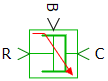 Блок имеет два механических порта (C и R) поступательного движения и один математический порт D, через который в модель поступает значение коэффициента демпфирования D(t).