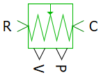 Блок имеет два механических порта поступательного движения – C и R. Постулируется, что положительное направление – от порта R к порту C. Также блок имеет два математических выходных порта, на которые поступают измеряемые значения v(t) и S(t).