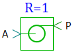 Если выбрана неявная схема, то блок имеет один механический порт вращательного движения A и один механический порт поступательного движения P (оба входные по скоростям). Если выбрана явная схема по W, то блок имеет один механический порт вращательного движения A (вход по угловой скорости), и выходной порт поступательного движения Р. Если выбрана явная схема по V, то блок имеет один механический порт поступательного движения P (вход по скорости) и механический порт вращательного движения А.