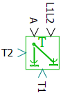 Блок имеет два механических ненаправленных порта вращательного движения, через которые на вход блока поступают угловые скорости, а на выход - моменты, действующие на тела вращения M1 и M2. Также блок имеет два математических входных порта. Через первый порт в модель блока поступает значение отношения R2/R1, а через второй порт - разница углов поворота тел М1 и М2. Выходные порты блока отсутствуют.