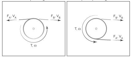 момент на барабане; FA - сила, приложенная к веревке A; FB