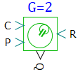 Блок имеет три механических порта (C - водило, P - сателлит, R - коронная шестерня) вращательного