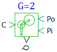 Блок имеет три механических порта (C - водило, PO - внешний сателлит, PI - внутренний