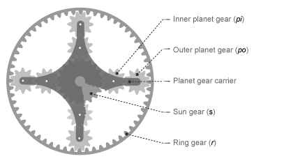 сателлит, внутренний сателлит – внешний сателлит, внешний сателлит – обод. Все элементы имеют