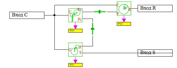 Рис. 2. Планетарный механизм с двумя сателлитамиМодель планетарного механизма представлена в виде субмодели, структурная схема которой