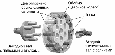 где: g - передаточное число; NR - число зубьев обоймы; NC - число зубьев сателлита.