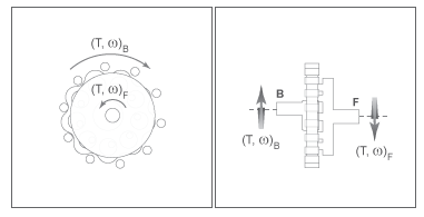 Если задана явная схема модели, то блок имеет один механический ненаправленный порт вращательного движения B (ведущий вал). В противном случае добавляется еще один механический ненаправленный порт вращательного движения F (ведомый вал). Если задана явная схема модели, то блок имеет один механический ненаправленный порт вращательного движения F (ведомый вал). В любом случае блок имеет один математический порт, на который поступает значение потерь мощности.