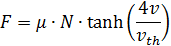 где: F - сила трения качения; N - прижимная сила; v - скорость ступицы колеса; vth - порог скорости; μ - коэффициент трения качения.