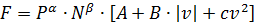 где: P - давление в колесе; α, β, A, B, с - коэффициенты аппроксимации.
