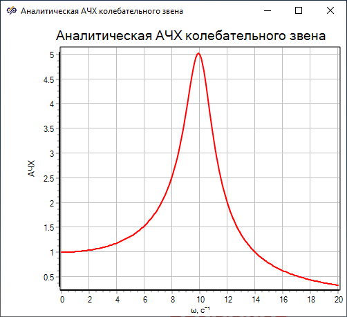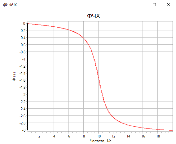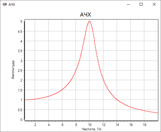 - Нажать кнопку "Пуск" для расчета частотной характеристики системы и вывода ее на график.