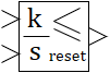 Блок выполняет интегрирование (в пределах ограничений) входного сигнала, поэтому пиктограмма блока имеет вид передаточной функции идеального интегрирующего звена с "добавкой" символа "меньше-равно" и словом reset. Размерности сигналов входа, выхода и вектора коэффициентов должны совпадать.