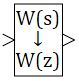 Блок реализует дискретную передаточную функцию с заданной частотой дискретизации по заданным коэффициентам непрерывной передаточной функции. Переход осуществляется пересчетом коэффициентов передаточной функции с помощью Z-преобразования c использованием выбранного метода дискретного интегрирования.