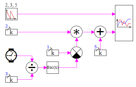 Блок идентичен следующей расчетной схеме (свойства Обратной пилы заданы равными 2, 3 и 5):