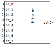 Блок осуществляет конвертацию числа в двоичной форме заданной разрядности в десятичное целое число. Например:
