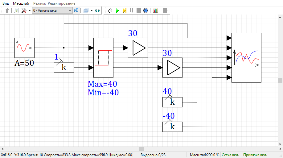 и оба выхода равны логическому нулю. Блок имеет один аналоговый вход и один дискретный вход -