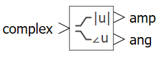 Блок реализует перевод комплексного числа в величину амплитуды и угла в радианах. Комплексное число может быть задано или через 1 входной порт, или через 2 порта (отдельно действительная и мнимая части).