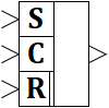 Блок реализует синхронный RS-триггер с приоритетом по сбросу, т.е. в момент синхронизации блок работает аналогично RS-триггеру с приоритетом по сбросу: