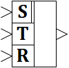 Реализует модель TR-триггера с приоритетом по установке и счётным входом. Если хотя бы на один из входов R или S подается логическая единица, то триггер работает как RS-триггер с приоритетом по установке: