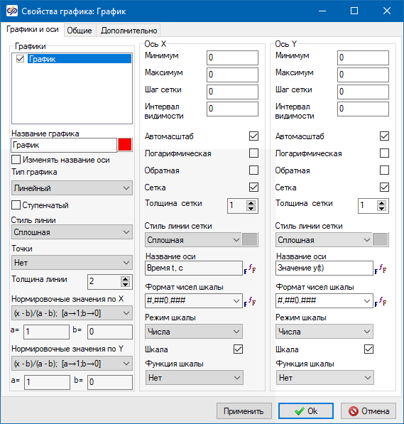 - Автомасштаб - возможность автомасштабирования (или нет) графика. По умолчанию автомасштабирование включено;